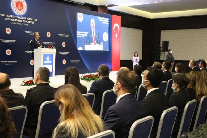 Bir dizi ziyaret için Edirne'ye gelen Adalet Bakanı Abdulhamit Gül, Adli Destek ve Mağdur Hizmetleri Değerlendirme toplantısında konuştu. Mağdur hizmetleri biriminde Cumhurbaşkanlığı kararnamesi ile yeni birim kurulduğunu açıklayan Bakan Gül, insan odaklı adalet anlayışı için Edirne'den seferberlik başlattıklarını belirtti. Yeni kurulan adli destek ve Mağdur Hizmetleri Müdürlüğü'nün adliyedeki bütün mağdurların eli, kolu ve gözü olacağını vurgulayan Bakan Gül, "Türkiye'deki mağdura yönelik yaklaşımlarımıza da sahada önerileri alacağımız değerli bir toplantı olacaktır, fırsat olacaktır" dedi.