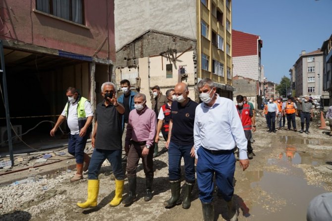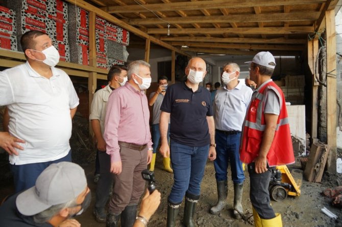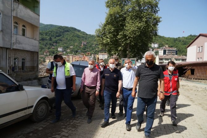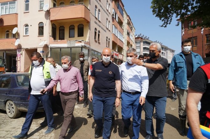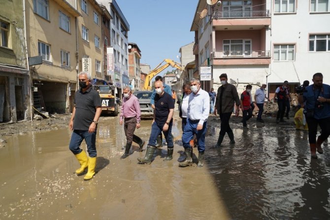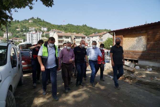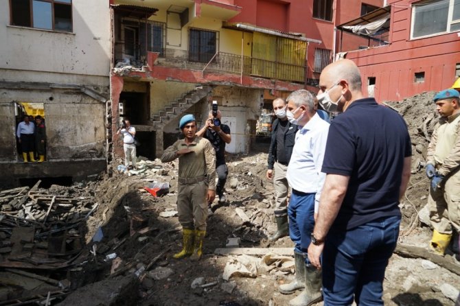 İncelemelerinin ardından değerlendirmede bulunan Ulaştırma ve Altyapı Bakanı Adil Karaismailoğlu, "11 Ağustos'ta malumunuz üzere Bartın, Kastamonu ve Sinop illerini kapsayan afet ile ülkemiz karşı karşıya kaldı. Bu afet tarih boyunca görülmemiş en büyük afetlerden bir tanesiydi. Afetin en çok etkilendiği Bozkurt'tayız şu anda. Bozkurt'ta hummalı bir çalışma yürütülüyor. Binlerce arkadaşımız binlerce iş makinesi ile devletimizin tüm bakanlıkları, devletimizin tüm kurumları, sivil toplum örgütleri, gönüllüler, topyekun bir mücadele var. Yine devlet-millet dayanışmasını önemli örneklerinden bir tanesini görüyoruz burada. Hayat yavaş yavaş normale dönüyor. İnşallah en kısa zamanda afet öncesi günlere döneceğiz. Bütün kurumlarımız afetin izlerini ortadan kaldırmak için hummalı bir çalışma yürütüyor. Yine Bakanlığımıza ait bu bölgede önemli çalışmalarımız var. Ulaştırma ve haberleşme alanında günlük ihtiyaçlar karşılandı zaten afetin ilk günlerinde. Şu an afetin başladığı 17'inci günündeyiz. Çok önemli gelişmeler var bölgede, inşallah hayat yavaş yavaş normale dönüyor. Bizlerde Ulaştırma Bakanlığı olarak ulaştırmaya ait projelerimizi hazırladık. Bir taraftan da imalatlarına başladık. Özellikle bölgeyi ilgilendiren, Çatalzeytin-Türkeli yani Kastamonu'yu Sinop'a bağlayan afet nedeniyle köprümüz ortadan yok oldu. 24 saati bile bulmayan bir sürede geçici köprümüzü yaptık, araç geçişine açtık. Bununla birlikte bölgede daha önce planladığımız projeleri de biran önce hayata geçirmek için planlamalarımızı yaptık ve onlara da biran önce başlıyoruz. Çatalzeytin-Kastamonu yolu, Bozkurt-Kastamonu yolu öncelikle buradan başlıyoruz selden etkilendiği için, bunlarla birlikte diğer ulaşım yollarımızı da yine çalışmalarına önümüzdeki günlerde başlıyoruz. Zaten köprü imalatlarımız başladı, hızlıca devam ediyor. Amacımız 2 ay gibi kısa bir sürede kalıcı köprülerimizi burada tamamlamak. Bozkurt'ta devam eden çalışmalarımızın yanı sıra Şenpazar'da, Cide'de, Küre'de yine afetin tüm izlerini ortadan kaldırmak için hummalı bir çalışma var. Buralarda da geçici servis yollarımızı faaliyete aldık, inşallah şimdi de kalıcı projelerimize başlayacağız. Tabii ki gönül istiyor böyle bir temennimiz, böyle bir afetin bir daha yaşanmaması ama artık bundan sonra böyle olası bir afet durumunda da ne yapacaklarımız ortada. Çok hızlı bir şekilde aksiyon alıp hayatı biran önce normal akışına bırakıyoruz. Bundan sonrada buralarda kalıcı projelerimiz ve böyle olası afetlerde etkilenmeyecek projelerimizi biran önce bitirip vatandaşlarımızın hizmetine sunmak. Bölgede incelemelerimiz devam ediyor. Artık bundan sonra planladığımız projeleri biran önce bitirilmesi için bütün arkadaşlarımızla birlikte artık konunun takipçisi olacağız. Bölgede bundan sonra da incelemelerimiz devam edecek" dedi.