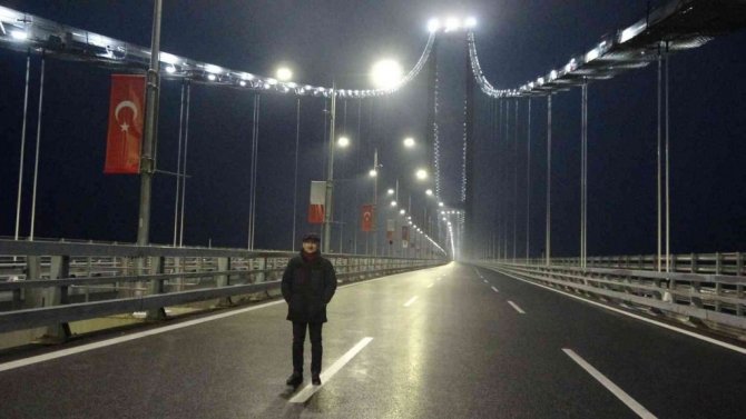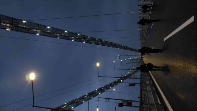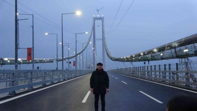 Ulaştırma ve Altyapı Bakanı Adil Karaismailoğlu, gün doğumunda 1915 Çanakkale Köprüsü üzerinden yürüyerek Avrupa'dan Asya'ya geçti.