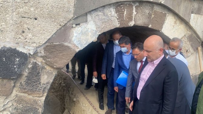 Ulaştırma ve Altyapı Bakanı Adil Karaismailoğlu, Afyonkarahisar'ın Bolvadin ilçesindeki tarihi Kırkgöz Köprüsü'nde incelemede bulundu.