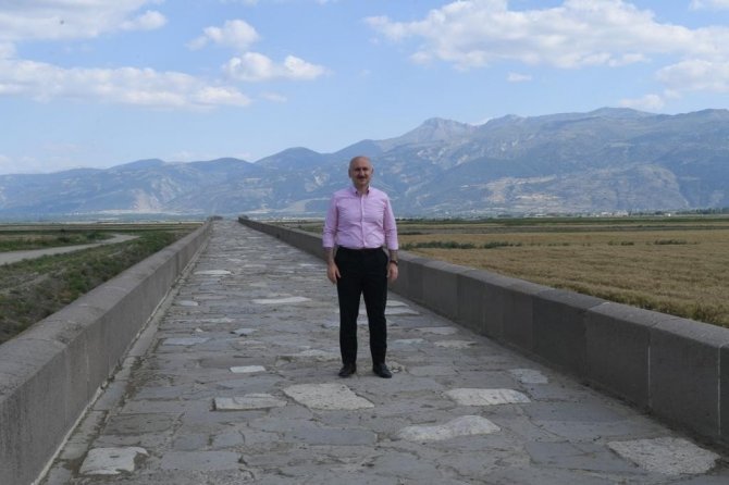 Ulaştırma ve Altyapı Bakanı Adil Karaismailoğlu, "Ata yadigarı tarihi köprülerimizin restorasyonunu yapıyoruz. Aslına uygun olarak korunmasını sağlıyoruz. Yol ve köprülerimiz bizim bu topraklardaki tapu senetlerimizdir" dedi.