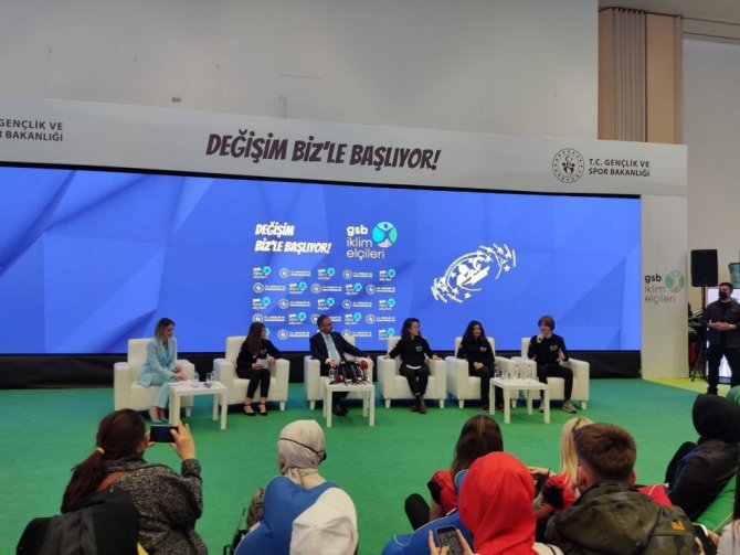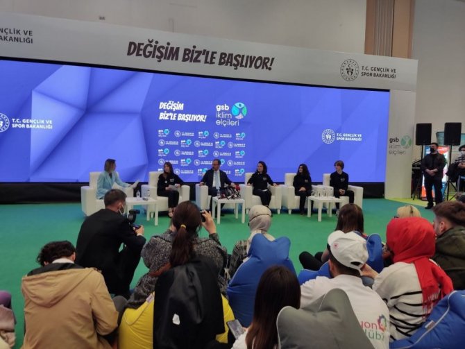 Gençlik ve Spor Bakanı Mehmet Muharrem Kasapoğlu, ATO Congresium'da düzenlenen Ekonomi ve İklim Değişikliği Zirvesi'nin (EKO İKLİM) ikinci gününde "Genç Meydan" alanında gençlerle buluştu. Gençlerle sohbet eden Bakan Kasapoğlu, iklim değişikliğiyle mücadelenin önemine vurgu yaptı. Kasapoğlu, sporcuları iklim elçisi ilan etme konusunda çalışma gerçekleştireceklerini bildirdi. Gençlere çevre duyarlılıkları için teşekkür eden Bakan Kasapoğlu, kitleleri ikna edip çevre duyarlılığını güçlendirmek gerektiğini belirterek, "Çevre bize emanet. Toprak, su, her türlü varlık aslında bizler için aynı zamanda birer sorumluluk. Bardakta duran suyun bize yüklediği sorumluluk var ve hakikaten bu anlamda her geçen gün özellikle iklim değişikliğiyle birlikte değişen şartlar var. Suyun sorumluluğundan bahsederken su kirliliği, kuraklık, suyun yokluğu bir tanesi. Evde buzdolabındaki elmanın bize yüklediği sorumluluk var. Gıda güvenliğinden, kıtlıktan bahsediyor dünya uzun vadede. Bir yandan temiz bir hava solumanın şükrünü eda etmemiz gerekiyor ama bir yandan da onun bize yüklediği sorumluluk var. Öncelikle bu bilince sahip olmak, bu bilinci diri tutmak, yani bir şeyi bir defa yapıp bırakmak değil asıl olan. Sürdürülebilir bir şekilde politikalar geliştirip o politikaları yine o dinamizme göre güncellemek gerekiyor" diye konuştu.