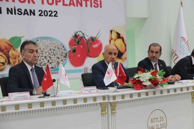 AK Parti Bitlis milletvekilleri Vahit Kiler ve Cemal Taşar ile birlikte kente gelen Tarım ve Orman Bakanı Vahit Kirişci'yi Bitlis Valisi Oktay Çağatay ve protokol karşıladı. Bakan Kirişci, Bitlis Valiliğinde ziyaretçi defterini imzaladıktan sonra Vali Çağatay tarafından kendisine Ahlat bastonu hediye edildi. Bitlis Valisinden ilin tarımsal alanları ile ilgili brifing alan Bakan Kirişci, daha sonra tarım sektör temsilcileri ile bir toplantı düzenledi. Valilik Toplantı Salonunda gerçekleştirilen toplantıda bir konuşma yapan Bakan Kirişci, ilk olarak geçen yıl çıkan orman yangınlarına değindi. Bitlis'te de yaşanan orman yangınlarından söz eden Bakan Kirişci, envanterlerine 55 adet helikopter eklediklerini söyledi. "Bitlis'te yüzde 22 gibi Türkiye geneline göre orman varlığımız biraz düşük olsa da neticede orman çok önemlidir" diyen Tarım ve Orman Bakanı Vahit Kirişci, "Geçtiğimiz yıl Temmuz ayında başlayan yangınlarda gördük ki sadece ağaçlarımız değil ormanın içindeki canlılarımız da bunun bedelini ödedi. Bizlerin bireyler olarak daha proaktif daha bir takım tedbirleri bir an önce uygulamak vatandaş olarak dikkat etmek ve ormana sahip çıkma durumunda olduğumuz anlaşılmış oldu. Bizde her yıl 3 binin üzerinde orman yangınları oluyor. Ama bunlardan 10-15'i kamuoyuna mal oluyor. Diğerleri o cefakar orman çalışanlarımız tarafından gece gündüz yürüttükleri faaliyetle üstesinden geliniyor. Bütün bunlara rağmen bu yıl envanterimize 55 tane helikopter 20 tane de söndürmede kullanılacak uçaklarla ilgili makine teçhizat yönünden daha zengin bir Orman Genel Müdürlüğümüz hizmet veriyor olacak. Her ne kadar Bitlis'te Akdeniz Bölgesinde bulunan ve kolay yanan çam olmasa da bu bütün bölgelerimiz ve illerimiz için bir tehdittir. Biz özellikle Orman Genel Müdürlüğü ve bakanlık olarak rüzgarın hızını yavaşlatamayacağımıza göre geriye iki seçenek kalıyor. Bir tanesi havadaki nemi arttırmak diğeri de hava sıcaklığı eğer artma eğilimindeyse bunun düşüşüne yapay bir takım bulutlar oluşturarak katkıda bulunmak" diye konuştu.