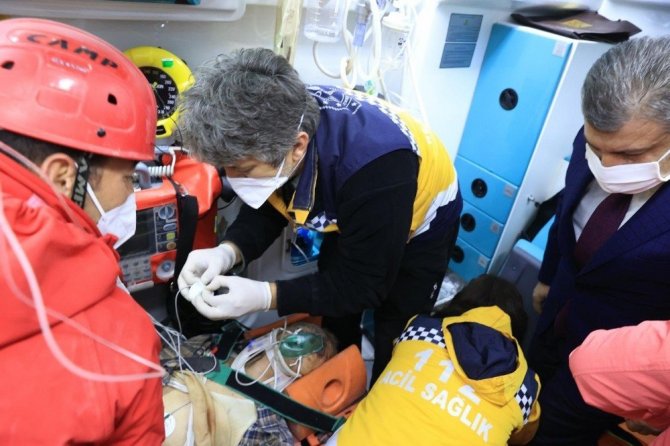 Bakan Koca ayrıca, enkazdan 70 yaşındaki bir depremzedenin sağ kurtarıldığını açıkladı. Bakan Koca, "Hayat bir kez daha kazandı. Bu gece 01.00 sularında, depremden tam 34 saat sonra, 70 yaşındaki Ahmet amcamız, UMKE ekiplerinin yardımıyla yıkıntıların arasından sağ çıkmayı başardı. Geçmiş olsun Ahmet amca. Bizi mutlu eden sözün için de teşekkür ederiz; umudumu hiç kaybetmedim” paylaşımında bulundu.