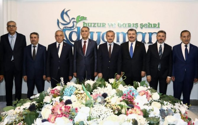 Adıyaman Belediye Başkanı Süleyman Kılınç, belediye meclis üyeleri, belediye başkan yarımcıları ve birim müdürleri tarafından kapıda karşılanan Bakan Koca'ya, Milli Savunma Komisyon Başkanı ve AK Parti Adıyaman Milletvekili Ahmet Aydın, Adıyaman Valisi Mahmut Çuhadar, Adıyaman Üniversitesi Rektörü Prof. Dr. Mehmet Turgut, Adıyaman İl Sağlık Müdürü Uzm. Dr. Erdoğan Öz, AK Parti İl Başkanı Mehmet Dağtekin ile AK Parti Merkez ilçe Başkanı Mustafa Alkayış eşlik etti. Belediye başkanlığı makamında gerçekleşen ziyarette şeref defterini imzalayan Bakan Koca, kendisi gibi hekim olan Başkan Kılınç'ı yaptığı başarılı çalışmalardan dolayı tebrik etti.