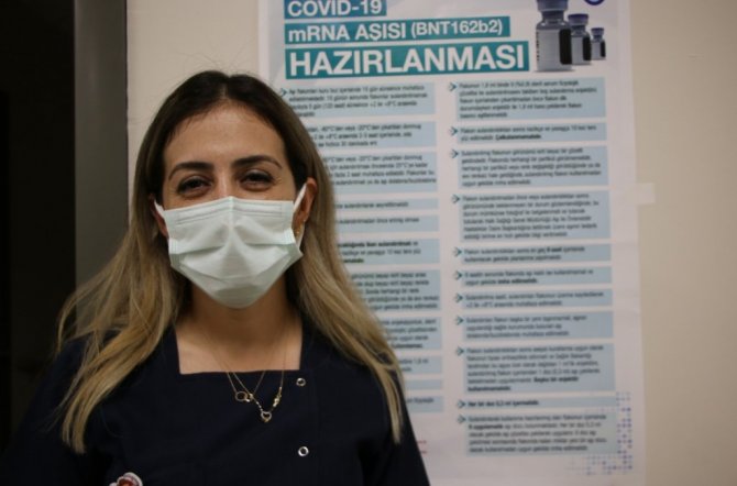 23 yıldır meslekte aktif çalışan, Göğüs Kalp Damar Cerrahisi Servisi sorumlusu Eda hemşire ocak ayından beri aşılamada görev yapıyor. Pankreas başı tümör hastalığından dolayı yakın zamanda ameliyat geçiren Eda hemşirenin tedavisi hala sürüyor. Rahatsızlığına rağmen idari iznini yarıda kesip fedakarca çalışan 2 çocuk annesi Eda hemşirenin en büyük isteği ise bir yıldır görüşemediği oğluna kavuşmak istemesi, çağrısı da vatandaşların aşı olması oldu.