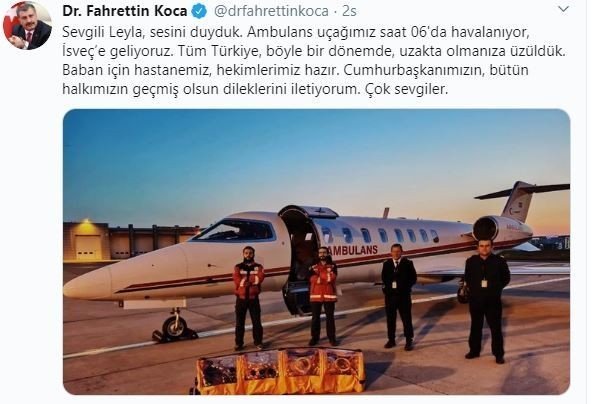 Bakan Koca talimat verdi, İsveç’te yaşayan Covid-19 hastası Türkiye’ye getiriliyor