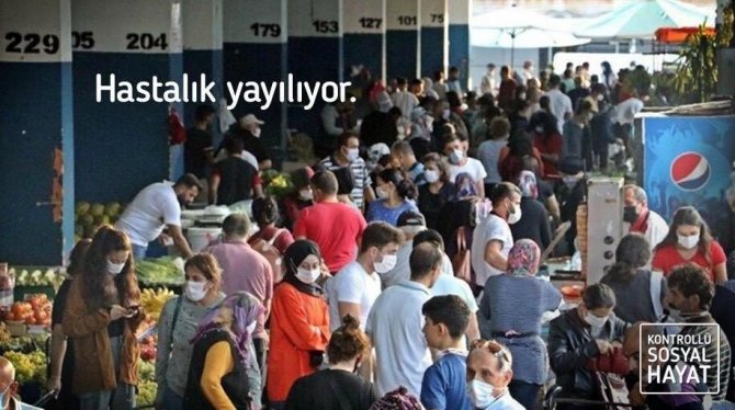 Sağlık Bakanı Fahrettin Koca, Twitter hesabından “hastalık yayılıyor” notu ile fotoğraflar paylaştı. Bakan Koca’nın paylaşımlarında İstanbul İstiklal Caddesi’nde sosyal mesafenin olmadığı ve maskesiz insanların olduğu fotoğrafın yanı sıra aynı şekilde sosyal mesafeye riayet edilmeyen ve maske kuralına uyulmayan bir pazar fotoğrafı yer aldı.