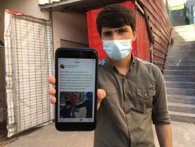 Bartın'da başlatılan "yerinde aşı uygulaması" kapsamında dondurma yerken aşısını olan ve o anda çekilen fotoğrafı Sağlık Bakanı Fahrettin Koca tarafından paylaşılan Furkan Kardaş, Bakan Koca ve sağlık ekiplerine teşekkür etti.