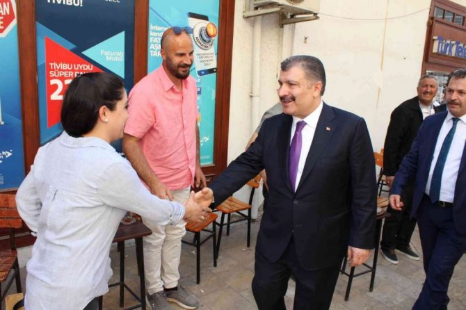 Bir dizi ziyaret için Aydın'a gelen Sağlık Bakanı Dr. Fahrettin Koca esnaf ziyareti gerçekleştirirken, Aydınlılar Bakan Koca'ya yoğun ilgi gösterdi.