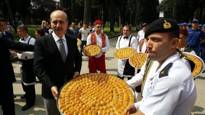 Konuşmaların ardından Kültür ve Turizm Bakanı Numan Kurtulmuş bir tepsi baklavayı önce tören alanında bekleyen askerlere daha sonrada töreni seyreden yerli ve yabancı turistlere ikram etti.