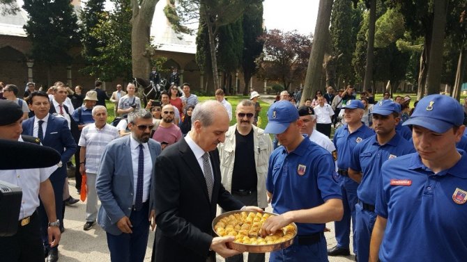 Osmanlı ramazanlarında icra edilen törenlerden biri olan ‘Baklava Alayı’ Topkapı Sarayı’nda tekrar yaşatıldı. Programa katılan Kültür ve Turizm Bakanı Numan Kurtulmuş, önce törendeki askerlere ardından yerli ve yabancı turistlere baklava dağıttı.