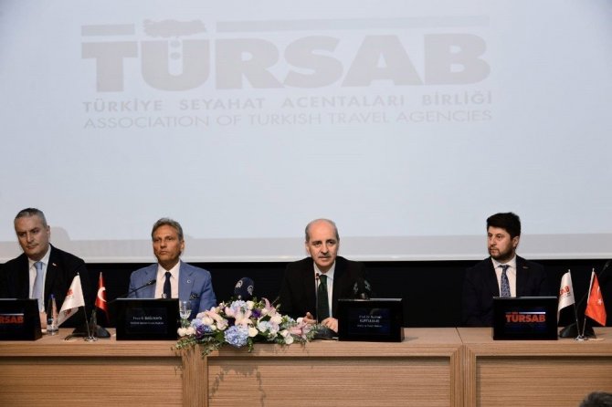 “Turizm sektöründe özellikle üst gelir gruplarını çekecek kongre turizmi, inanç turizmi, sağlık turizmi, yaşlı bakım turizmi gibi alanlardaki etkinliğimizi arttıracağız” diyen Kurtulmuş, “Ümit ediyorum ki 2023 hedeflerimizi aynen 2018 hedefleri gibi yukarıya doğru revize edeceğiz. 2023 yılı hedefimiz olan 50 milyon turist 50 milyar dolar gelir hedefini 60 milyon turist ve 60 milyar dolar gelir seviyesine ulaştıracağız. Turizm sektöründeki bu canlılık sadece Türkiye üzerindeki olumsuz algı operasyonlarının bertaraf edilmesi bakımından değil, aynı zamanda Türkiye’nin en temel problemlerinden birisi olan cari açığın giderilmesi bakımından da önemlidir. Turizmdeki bu gelişmenin hem Türkiye’nin tanıtımı hem de pozitif algısının oluşturulması bakımından çok önemli var; ama bunun da ötesinde ekonomimizin reel tarafını güçlendirici bir özelliği var. Turistlere yaptığımız hizmet aslında bir ihracat olarak görülmeli. Böylece turizmdeki ilerleme bütünüyle ihracatımızın yukarıya doğru çıktığı anlamına geliyor ve cari açığı da tek başına giderebilecek bir seviyeye neredeyse ulaşma potansiyeli taşıyor. Bu özelliğiyle de turizm sektöründeki gelişmenin ümit verici olduğunu ifade etmek isterim. Sektörün bütün bileşenlerinin birtakım oyunu bilinci içerisinde Türkiye’yi nasıl daha fazla ileriye götürebilirizin üzerine yoğunlaşması lazım” açıklamasında bulundu.