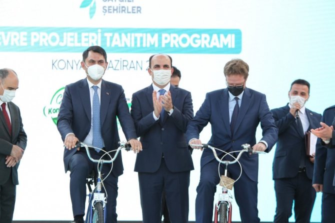 2023 yılına kadar 3 bin kilometre bisiklet yolu yapmak için yola çıktıklarını kaydeden Bakan Kurum, "Şu ana kadar sadece Bakanlık eliyle toplamda 480 kilometre bisiklet yolunu tamamladık. Projesi bitmiş 450 kilometre bisiklet yolunun ise inşa çalışmalarına hızla devam ediyoruz. Ülkemizde yaptığımız bu projelerin tamamını, Konya'mızda da yapıyoruz. Bugüne kadar Konya'mıza; millet bahçelerinden bisiklet yollarına, gürültü bariyerlerinden hava kalitesinin iyileştirilmesine kadar milyarca liralık yatırım kazandırdık. Hemşerilerimizin; daha rahat, daha temiz ve daha güvenilir bir ortamda vakit geçirebilmeleri bizim için çok değerli. Bunun için de; 2 milyon 400 bin metrekare büyüklüğünde yeşil alan kazandırıyoruz, tam 14 millet bahçesi yapıyoruz. Meram Dutlukır Millet Bahçemizi açtık, 250 bin Konyalı hemşerimiz yürüyerek ulaşıyor. Geçtiğimiz Ocak ayında ise Eski stadyumun bulunduğu 108 bin metrekarelik alandaki millet bahçemizi de heyecan içerisinde ilk fidanlarıyla buluşturduk" diye konuştu.