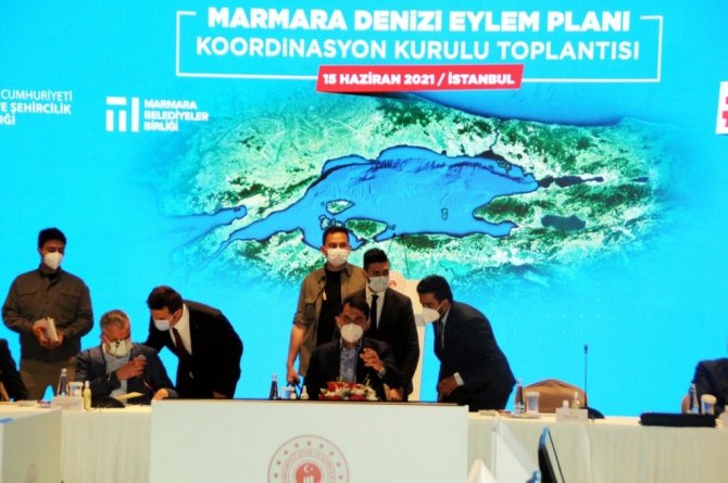 Çevre ve Şehircilik Bakanı Murat Kurum, Cumhurbaşkanlığı Dolmabahçe Çalışma Ofisi'nde, Marmara Deniz Koruma Eylem Planı Koordinasyon toplantısına katıldı. Toplantının ardından kameraların karşısına geçen Bakan Kurum, yaptığı açıklamada Marmara Denizi'nde düne göre iyiye gidişin olduğunu ve 169 bölgede 7 gün içerisinde 2 bin 684 metreküp müsilajı toplandığını ifade etti. Yapılan ilk incelemeler neticesinde müsilajın tehlikeli atık olmadığı veya toksit özellik göstermediğinin tespit edildiğini söyleyen Bakan Kurum, konuşmasının devamında Marmara Denizi Koruma Eylem Planı'nı açıkladı.
