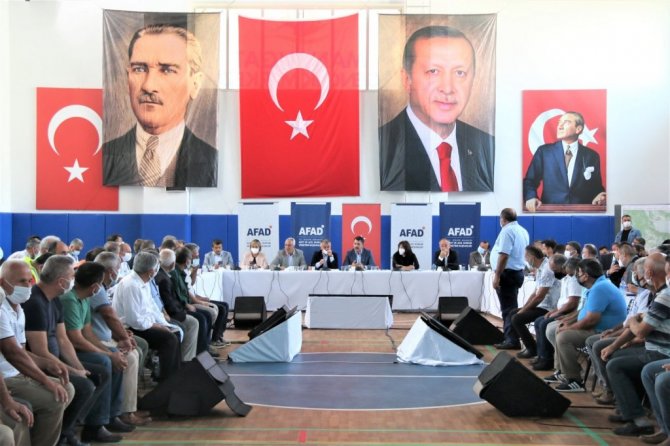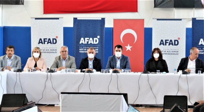Çevre ve Şehircilik Bakanı Murat Kurum, Antalya'nın Manavgat ilçesinde AFAD koordinasyon toplantısına katıldı. Toplantıda Manavgat'ta 28 Temmuz'da başlayarak 10 gün boyunca devam eden orman yangını sonrasında yapılanlar değerlendirildi. Bakan Kurum, toplantı sonrasında mahalle muhtarları ile bir araya geldi. Daha sonra basın mensuplarına açıklamalarda bulunan Bakan Kurum, "Hem Antalya, Muğla ve Karadeniz'de afetlerde insanüstü çalışan tüm ekiplerimize teşekkür ediyorum. 11 gün boyunca bir fiil biz de mahalle mahalle muhtarlarımızı ziyaret ettik. Onların ihtiyaçlarını karşılamaya gayret gösterdik. Şimdi de köylerimizin yangından zarar gören alanlarımızın ihya sürecini başlattık. Söz verdiğimiz gibi 1 yıl içerisinde tamamlamayı hedefliyoruz. Antalya ve Muğla'da 2 bin 516 bağımsız birimi acil ağır hasarlı olduğunun tespitini yaptık. Bin 100 binanın yıkım çalışmasını tamamladık. Evleri yanan vatandaşlarımıza eşya ve kira yardımı ödendi. Konut ihalelerimizi yaptık. Hızlı bir şekilde vatandaşlarımızın yanında olmaya gayret gösterdik" dedi.