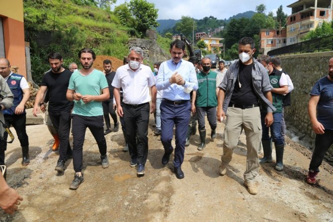Çevre ve Şehircilik Bakanı Murat Kurum, Rize'de selden zarar gören alanlarda hızlı bir şekilde hasar tespit çalışması yürüttüklerini belirterek "Selde...