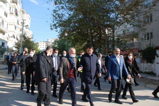 Çevre, Şehircilik ve İklim Değişikliği Bakanı Murat Kurum, İzmir Valisi Yavuz Selim Köşger ile birlikte 30 Ekim 2020'de meydana gelen depremin ardından inşa edilen konutları yerinde inceledi. Depremden en fazla etkilenen bölge olan Bayraklı ilçesinde inşa edilen binaları ve yapımı devam eden binaların şantiyelerini gezen Bakan Kurum, çalışmalar hakkında incelemelerde bulundu. Bakan Kurum, yarın İzmir'i ziyaret edecek olan Cumhurbaşkanı Recep Tayyip Erdoğan'ın 596 konut ve 145 işyerini İzmirli depremzedelere teslim edeceğini söyledi. Bayraklı genelinde 7 bölgede ve rezerv alanda konutların yapım sürecini başlattıklarını kaydeden Bakan Kurum, hem Bayraklı'da hem de rezerv alanda 5 bin 39 bağımsız bölümden oluşan İzmir tarihinin en büyük kentsel dönüşüm projesini başlattıklarını ifade etti. Bakan Kurum, rezerv alanda 369 konutunu yıl sonu itibariyle tamamlayacaklarını, diğer konutların da etaplar halinde teslim edileceğini kaydetti.