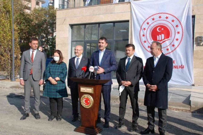 İzmir'de meydana gelen depremde yaşanılan süreci anlatan Bakan Kurum, "Acısını hala dün gibi hissediyoruz. Vatandaşlarımızın hayatını kaybettiği, enkaz alanlarında yakınlarını bekleyen vatandaşlarımızın olduğu ve tüm Türkiye'nin İzmir için kalbinin attığı bir süreci yaşadık. O gün, hep birlikte büyük Türkiye Ailesi ile İzmir'in yaralarını sarmak için seferberlik ruhu içerisinde İzmir'e hareket ettik. Bütün illerimizden gelenler vardı. Arama kurtarma ekiplerimiz vardı. Vatandaşlarımızla enkazdan yakınlarının bir an önce çıkabilmesi amacıyla hep birlikte dua ettik. Onlara bir söz vermiştik. "Bir yıl içerisinde size sağlam, güvenli konutlarınızı yapacağız. Acılarınızı bitiremeyiz ama dindirmek adına hızlı bir şekilde sizlerin mağduriyetini gidereceğiz" dedik. Cumhurbaşkanımız, buraya gelip hem İzmir'imize hem Türkiye'mize söz verip bu sözü paylaştı" sözlerine yer verdi.