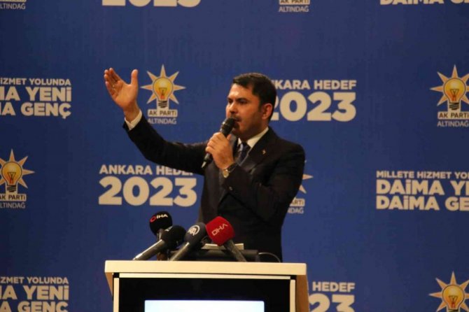 Çevre, Şehircilik ve İklim Değişikliği Bakanı Murat Kurum, Ankara Altındağ Şair Baki Kültür Merkezi'nde düzenlen AK Parti Altındağ İlçe Danışma Toplantısı'na katıldı. Bakan Kurum, burada yaptığı konuşmasında, Ankara'da 21 millet bahçesi yaptıklarını belirtti. 15 bin sosyal konut yapıldığına da değinen Kurum, "Cumhurbaşkanımızın liderliğinde, sizlerin sahada verdiğiniz sözleri yerine getirmek için tüm bakan arkadaşlarımızla birlikte var gücümüzle çalışıyoruz. Medeniyet yürüyüşümüzde; "çevreye saygılı iklim dostu şehirler" diyerek; 81 şehrimizde yatırımlarımıza, vizyon projelerimize ara vermeden devam ediyoruz. Bugün hamdolsun, Ankara'mızın 25 ilçesinde, her alanda çalışmalarımız süratle devam ediyor. Bütün ilçelerimizde; on binlerce sağlıksız yapıyı dönüştürüyoruz. Ankara'da 21 millet bahçesi yapıyoruz. Mamak'tan Altındağ'a Çankaya'dan Yenimahalle'ye Ankara'mızın tüm ilçelerinde tam 15 bin sosyal konut yapıyoruz. Saraçoğlu Mahallemizi aslına uygun bir şekilde yeniden ihya ediyoruz. Ankara'mıza yeni tarih aksları, kültür aksları, yeşil koridorlar kazandırıyoruz. "Eski Ankara', "Tarihi Ankara." Ülkemizin en önemli kentsel yenileme projesini Altındağ'da gerçekleştiriyoruz. İlçemizde; Ankara Kalesi'ni, Hergelen Meydanı'nı, Yahudi Mahallesi'ni, Belediye Binamızı da içine alan muhteşem bir projeyle, tarihi bugünle buluşturuyoruz. Atıfbey-Hıdırlıktepe ve İsmetpaşa Mahallelerinden; İtfaiye Çarşısı'na, Başpınar Mahallesinden Çalışkanlar Mahallesi'ne, Önder'den Örnek Mahallemize, Gültepe'den Aktaş Mahallemize kadar Altındağ'da dört koldan başlattığımız bu büyük şehircilik adımlarıyla, Altındağlı hemşerilerimizin hizmetkarıyız, Başkentimizin hizmetkarıyız. Başkentimizde; sesimizi değil, sözümüzü; lafı değil icraatı, tembelliği değil çalışkanlığı, eserlerimizi yükseltmeye Allah'ın izniyle devam edeceğiz" diye konuştu.