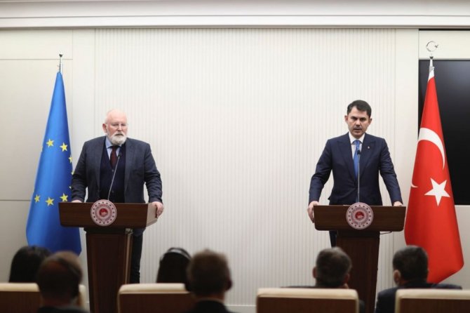 Çevre, Şehircilik ve İklim Değişikliği Bakanı Murat Kurum, Avrupa Birliği (AB) Komisyonu Başkan Yardımcısı Frans Timmermans ile düzenlediği basın...