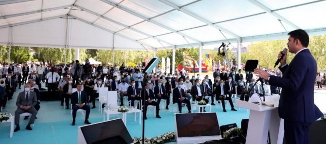 "Bu projelerimizden biri de Gölbaşı Millet Bahçemiz. 750 bin metrekarelik proje tasarlandı, tamamlandı ve Amerika'da düzenlenen 4. Uluslararası Sürdürülebilir Yapılar Sempozyumu'nda Sürdürülebilir Peyzaj kategorisinde binlerce proje arasından birinci olarak seçildi. İnşallah bu projeye yıl sonu başlayıp, 2020 yılı içerisinde tamamlayıp Ankara'mızın, Gölbaşı'mızın hizmetine sunacağız. Şimdiden millet bahçemiz hayırlı uğurlu olsun."