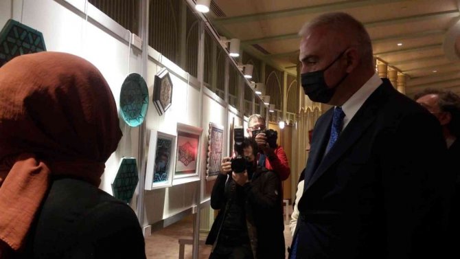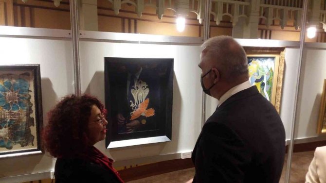 Eseri sergilenen Emine Kırkan, "Evet, bu Selçuklu Sergisi. Selçukluyla ilgili bir konu üzerinde birleştirildi. Ben de buraya Selçuklu Karasu şeklinde düzenlediğim bir tezhip panosuyla katıldım. Etrafında Rumi desenleri var, ortada da İhlas Suresi hazırlanmış, Ahmet Karahisari'nin İhlas Suresi'ni koydum. Bu şekilde hem hat, hem tezhipli ve "Derin Kökler" ismini verdim. Derin köklerimize de işaret eden bir eser ortaya çıktı" dedi.