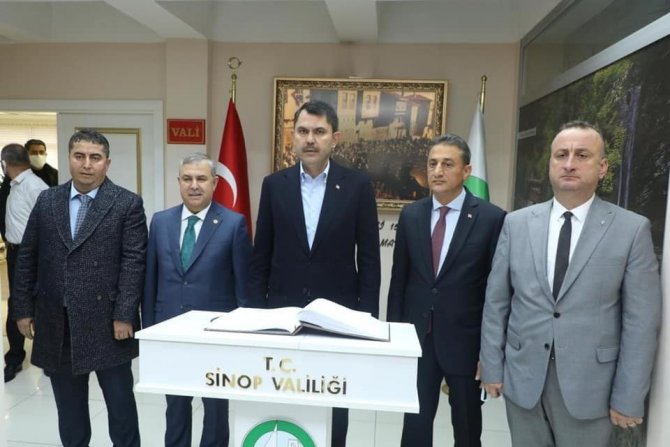 Bakan Murat Kurum, Sinop Valiliğine gelişinde Vali Erol Karaömeroğlu ve il protokolü tarafından karşılandı. Karşılama sonrası Çevre, Şehircilik ve İklim Değişikliği Bakanı Murat Kurum tarafından valilik şeref defteri imzalandı. Valilik şeref defterinin imzalanmasının ardından Bakan Kurum, valilik makamında Vali Karaömeroğlu'ndan Sinop ilinin genel durumu hakkında bilgiler aldı. Ziyarette Vali Karaömeroğlu, Bakan Murat Kurum'a Sinop'ta imal edilen Sinop'a özgü bıçak hediye etti.
