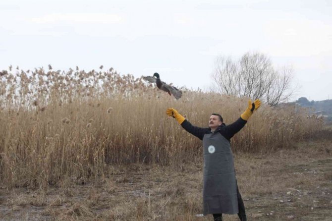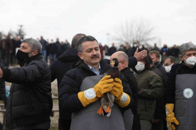 Tarım ve Orman Bakanı Bekir Pakdemirli, Uludağ'da hayvanlar için doğaya yem bırakarak, Bursa'nın Karacabey ilçesindeki Uluabat Gölü'ne yaban ördeği saldı.