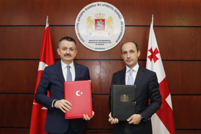 Gürcistan'a gelen Tarım ve Orman Bakanı Bekir Pakdemirli, başkent Tiflis'te Gürcistan Çevre Koruma ve Tarım Bakanı Levan Davitaşvili ile bir araya geldi.