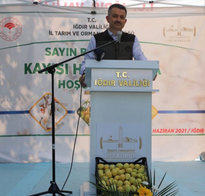 "Memnuniyetle ifade etmek isterim ki bakanlığımızın ve benim de çok önem verdiğim bir birimi Iğdır'ımıza kazandırdık. Iğdır'a bir Meteoroloji Bölge Müdürlüğü açtık. Bölge Müdürlüğü özellikle küçük illerde son derece önemli. Kamunun oralara yerleşmesi oraları bir çekim merkezi haline getiriyor. 3 tane ülkeye komşu bir il 4 tane ülkenin bir arada olduğu böyle bir toprak yok. Tabi ki Azerbaycan'daki ve Karabağ'daki son gelişmelerden dolayı da ister istemez Iğdır çok daha önemli olacak. Karabağ'la ilgili olan gelişmelerden sonra ben inanıyorum ki Iğdır'ımız çok daha farklı bir yere gelecek diye düşünüyorum. Bakanlık olarak Iğdır'da kayısı üretimini geliştirmek için ve üreticimizin gelirini arttırmak için her şeyi seferber edeceğiz. Iğdır'daki eskiyen sulama sistemlerinin yenilenmesi için biz de gerekli çabayı ve gayreti ortaya koyacağız. İl Tarım ve Orman Müdürlüğümüze ben teşekkür ediyorum. Geliştirdikleri projelerle son üç yılda 2 bin 300 dekar yeni kayısı bahçesi üretime başladı. Buradan anladığımız üzere Iğdır'daki toplam kayısı bahçelerinin son 3 senede yüzde 5 büyümüş demektir. Bakanlık olarak birçok destek veriyoruz. Kısaca buradan tekrar edelim ki buradan kayısı bahçesi yapmak isteyenlere de ilham olsun. Fidan desteği dekarda 100 ile 300 liraya kadar, mazot ve gübre desteği 23 lira dekarda, organik tarım için dekarda 50 ile 100 lira arasında, iyi tarım için 20 ile 40 lira dekarda destek sunuyoruz. Bunun yanında çok sayıda desteğimiz yine bulunuyor. Siz yeter ki üretin. Destek bizden, üretmek sizden bereket ise Allah'tan. Bu sene kuraklığı yaşıyoruz. Hep birlikte bu kuraklığı yaşıyoruz. Birçok alanda bu kuraklığı yaşadık. Rabbim inşallah bir daha bu coğrafyaya kuraklık vermesin. Ama bunun anlamı da şu: "Suya da eskisi gibi davranmayacağız. Sudan ucuz demeyeceğiz." Suya da çok daha farklı yaklaşmamız gerekiyor. Suyun parası az da olsa suya altın gibi mücevher gibi davranacağız. Devlet olarak bunu en başta biz yapacağız. Ama sizlerde suyun kullanımında özellikle tarımsal suyun kullanımında dikkat edeceksiniz çünkü tüm Türkiye'nin su kaynaklarına baktığımız zaman yüzde 70'ini bizler yani tarımın paydaşları kullanıyoruz. Daha az su kaybıyla daha fazla üretim oluşturacak şekilde hep beraber inşallah suyu kullanacağız. Iğdır kayısısının daha çok arttırmanın yolunu bulmamız gerekiyor. Coğrafi işaretimiz zaten var ama özellikle coğrafi işaretli Iğdır ürünlerini uzak coğrafyalara satmayı ve bunlardan da gelir elde etmeyi hepimizin öğrenmesi lazım. Bugün artık internet çağında yaşıyoruz. Bu anlamda da bizim bakanlık olarak ortaya koyduğumuz Dijital Tarım Pazarı diye bir projemiz var. Dijital Tarım Pazarını kullanarak Iğdırlı kardeşim Edirne'deki kardeşime kayısı satabilecek. Dijital Tarım Pazarına da ben tüm üreticilerimizi de davet ediyorum. Burada sözleşmeli üretim var. Tüm tarım paydaşlarımızın bir araya geldiği bir platform. Henüz bir yaşına yeni girdi. Dijital tarım Pazarını da bu şekilde hatırlatmış olalım. Çiftçimizin, üreticimizin, besicimizin, yetiştiricimizin sayesinde bu ülkeye senede 335 milyar lira üretim gerçekleştiriyor. Bunda en başta katkısı olan sizlere çok teşekkür ediyorum. Bu duygu ve düşüncelerle hepinize yeniden çok teşekkür ediyorum. Bu lezzetli kayısılarla bizi buluşturduğunuz için tekrar teşekkür ediyorum."