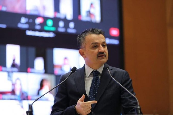 Bakanlık bünyesinde 1 genel müdür, 14 daire başkanı, 115 şube müdürü ve 321 kadın yöneticinin olduğunu, dolayısıyla kadın çalışanların Bakanlıkta aktif bir şekilde rol aldığının altını çizen Pakdemirli, "Kadınlarımız sadece tarımsal üretimde değil, tarımın yönetiminde, politikaların belirlenmesinde ve uygulanmasında da ön planda. Tarım ve orman sektörünün kadınların enerjisine ve bakış açısına ihtiyacı var. Kadınların fikri ve duygusal katkısı, tarım ve orman sektörünün karar mekanizmalarında ne kadar çok olursa, Bakanlığımız daha üretken, daha etkili ve daha başarılı bir konuma ulaşacaktır. O nedenle Bakanlığımızın tarımsal üretimi doğrudan ilgilendiren en önemli birimlerini kadınlarımıza emanet ediyoruz. Hepinizin bildiği gibi Bakan Yardımcımız Ayşe Ayşin Işıkgece, Bakanlığımızdaki ilk kadın bakan yardımcısıdır. Bakanlığımız merkez teşkilatında çok sayıda kadın yöneticimiz var. 1 genel müdür, 14 daire başkanı, 115 şube müdürü ve koordinatör kadınımız da görev yapmaktadır. Son 3 yılda merkez ve taşra teşkilatımızdaki kadın yönetici sayımızı yüzde 41 arttırarak 321'e çıkardık. Taşra teşkilatında ise kadınlarımıza güveniyor ve onlardan daha fazla faydalanmak istiyoruz. Bakanlığımız, bağlı ve ilgili kuruluşlarımızın taşra teşkilatlarında görev yapan personellerimizin 30 bine yakını kadınlardan oluşmaktadır. İnşallah daha çok kadınımızı bu makamlarda görmek, görevlendirmek, onların teknik bilgisinden, titiz yaklaşımından daha fazla faydalanmak istiyoruz" ifadelerini kullandı.