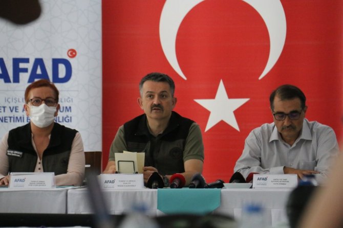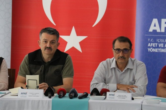 Enerji ve Tabii Kaynaklar Bakanı Fatih Dönmez de, "Nihayet yangınlarımız sona erdi. Bu bölgede kritik tesislerimiz vardı. Kemerköy Santrali'nde ufak çaplı bazı hasarlar da yaşadık. Bakım ve onarımlar hızla tamamlanıyor. Yeniköy Termik Santrali'nde 2. ünite devreye alındı. Kemerköy Santrali'nde de yürütülen çalışmalar sonrası 2. ünite de devreye girecek ve yangın öncesi üretim kapasitesine dönüşecek. Köylere ve mahallelere elektrik verilmeye başlandı. Hiçbir vatandaşımız mağdur bırakılmadı. Dün sabah Batı Karadeniz'de başlayan sel felaketine 3 bakanımız gitti. Afet bölgesinde gerekli çalışmaları yapıyorlar. Doğal afetlerde aşırı yağışlarda elektrik altyapısı maalesef etkileniyor. 4 il, 19 ilçe, 495 köy elektriksiz kaldı. Bir kısmı AFAD ile ortak çalışılan arama kurtarma faaliyetlerinin çalışmalarında tedbir amaçlı kesildi. Diğer bölgeden gelen destek ekipleri selden etkilenenler için ve elektrik kesintilerin bir an önce normale dönmesi için çalışıyor. Bazı yerleşim noktalarına mobil jeneratörler getirildi. Tedbiri elden bırakmadan mücadeleye devam ediyoruz ve 3 bakanımız orada. Ben de buradan ayrılınca ivedilikle bölgeye intikal edeceğim" dedi.