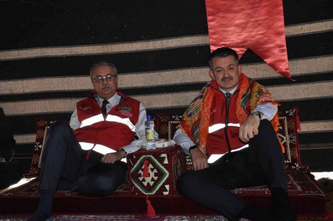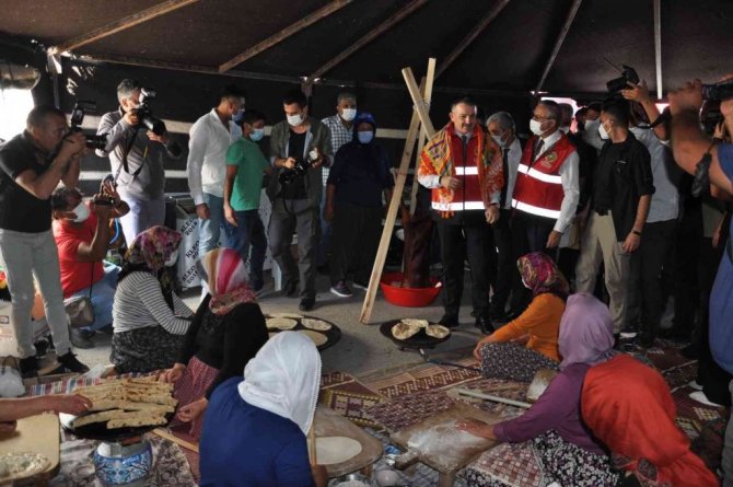 Daha sonra Pakdemirli tören alanına kurulan yörük kıl çadırına geçerek burada sıkma yiyip ayran içti. Kıl çadırda sıkma yapan kadınlarla bir süre sohbet etti.