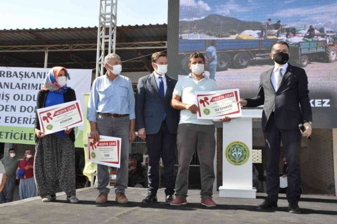Tören sonrası üreticilere su tankeri, römork ve yem dağıtıldı