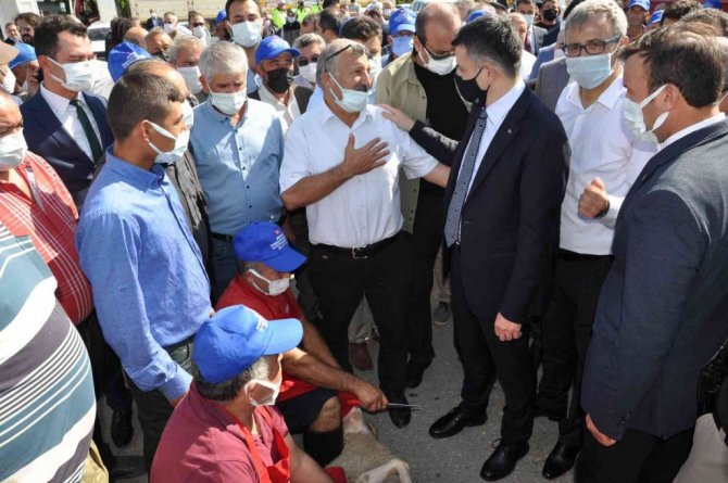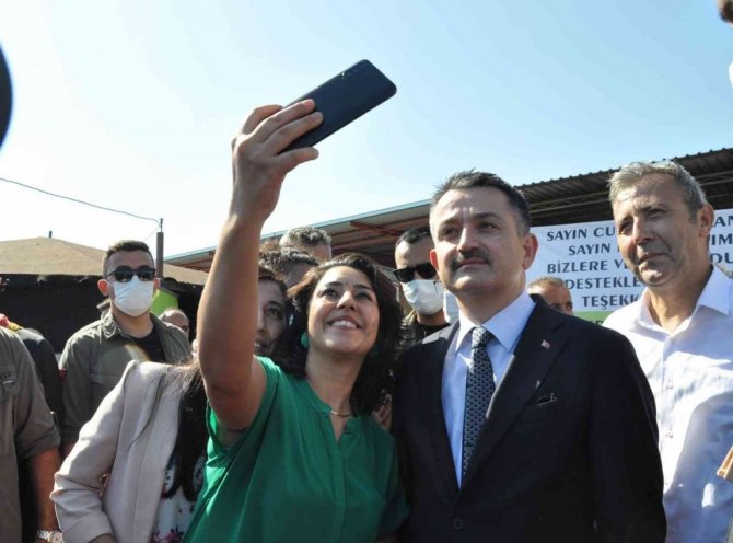 Helikopterle Atayurt Mahallesine gelen Bakan Pakdemirli tören alanında ki çiftçileri ziyaret edip burada bulunan ekipmanları inceledi.