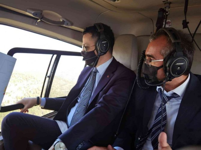 Bakan Pakdemirli, Mersin'in Tarsus ilçesinde yapılan Pamuklu Barajını helikopterle havadan inceledi.