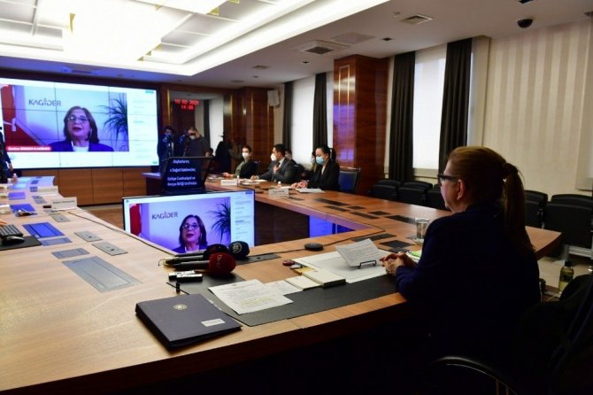 Ticaret Bakanı Ruhsar Pekcan, Türkiye Kadın Girişimciler Derneği (KAGİDER) tarafından düzenlenen "İş Dünyasında Kadın İletişim Ağı Projesi Toplantısı"na katıldı. Bakan Pekcan, konuşmasında girişimciliğin, özellikle de kadın girişimciliğinin gelişmesini sağlayacak sağlıklı ekosistemleri oluşturmanın devlet, özel sektör ve sivil toplum kuruluşları olarak herkesin ortak sorumluluğu olduğunu vurguladı. "Kadın İletişim Ağı Projesi'nin Türkiye'nin ihtiyaç duyduğu bu tür ekosistemlerin oluşumuna önemli katkı sağlayacağını aktaran Pekcan, "Kadın girişimcilerimizi desteklemek ve kendilerini ihracata yönlendirmek, Bakanlık olarak bizim de önceliklerimiz arasındadır. Kadın İletişim Ağı Projesi'nin Bakanlığımızın kadın ve genç girişimciliği alanında yürüttüğü çalışmalar ile örtüştüğünü görmekten memnuniyet duyuyorum. Girişimciler arasında network oluşturma konusu, uluslararası uygulamalarda üzerinde hassasiyetle durulan bir konudur. Bakanlık olarak hayata geçirdiğimiz Online/Fiziki Kadın Girişimci Network Projemiz ile iller bazında çok sayıda kadın girişimcimize ulaşmak için çalışmalar başlattık ve çalışmaya da devam ediyoruz. Projemiz çerçevesinde ocak sonu itibarıyla 44 ilimizde kadın girişimcilerimizin kolay ve güvenilir bir çevrede iş yapabilmek için ihtiyaç duydukları networkleri oluşturduk, bin 300'ün üzerinde kadın girişimciyi bu ağlarda bir araya getirdik" şeklinde konuştu.