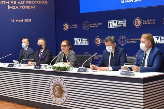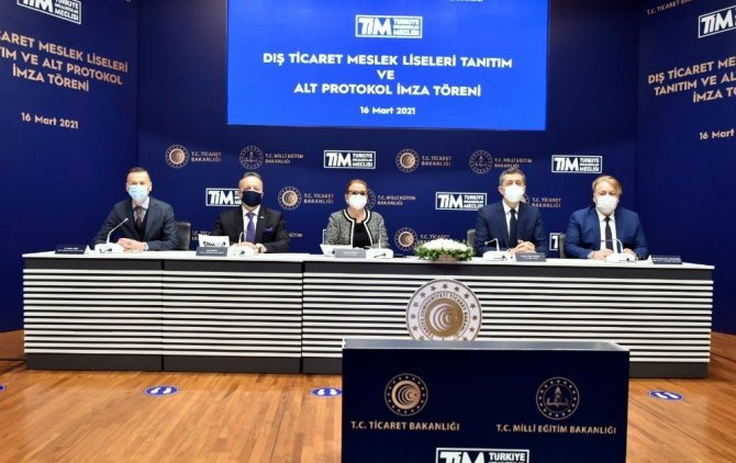 Milli Eğitim Bakanlığı, Ticaret Bakanlığı ve Türkiye İhracatçılar Birliği arasında Dış Ticaret Meslek Liseleri Ortak Protokolü imzalandı. Ticaret Bakanlığı binasında düzenlenen törene Milli Eğitim Bakanı Ziya Selçuk, Ticaret Bakanı Ruhsar Pekcan ve Türkiye İhracatçılar Birliği Başkanı İsmail Hülle katıldı. Programda konuşan Bakan Pekcan, "Bakanlıklarımız ve Türkiye İhracatçılar Meclisimizin ortak çalışması ile belli okullarımız Dış Ticaret Mesleki ve Teknik Anadolu Liseleri adıyla yeniden yapılandırıldı. Bu okullarımızda günümüzün uluslararası ticaret ortamına uygun, zengin ve etkili bir müfredatla dış ticarete yönelik mesleki eğitim sağlanması yönünde tüm hazırlıklar ve altyapı tamamlandı. Bugün bakanlıklarımız ve TİM arasında imzalanacak alt protokol ile işbirliğimizi geleceğe taşıyor, sağlamlaştırıyor, daha da kurumsal, süreklilik arz eden bir yapıya kavuşturuyoruz. Bu çerçevede özellikle protokolümüzün uygulanmasının takibini ve gerekli etki analizlerini yapmak üzere, hem bakanlıklarımızdan hem de İhracatçılar Meclisimizden temsilcilerin yer alacağı yürütme ve danışma kurullarımızı oluşturuyoruz" ifadelerini kullandı.