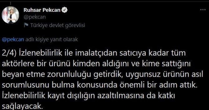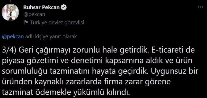 Bakan Pekcan, açıklamasında şunları kaydetti: