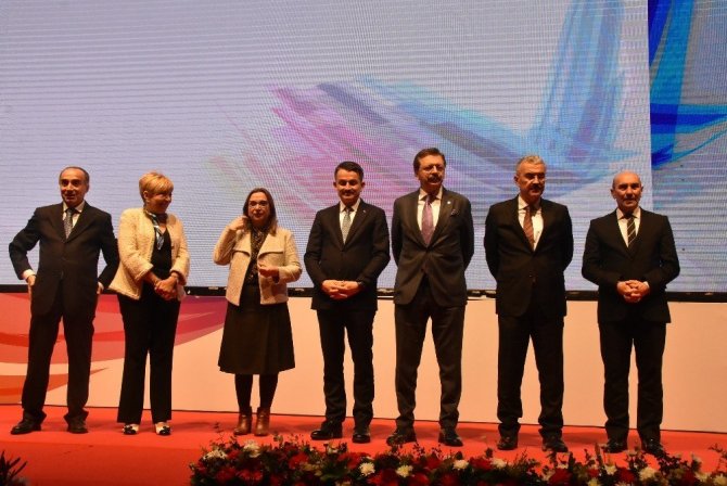 TOBB Başkanı Rifat Hisarcıklıoğlu da, “Bugün İzmir’de tarihi bir güne tanıklık ediyoruz. İZTO, EBSO ve İTB, yıllar sonra ilk defa böyle müşterek bir özel törenle İzmir iş dünyasını bir araya getirdi. Birlik ve beraberlik olunca rahmet ve bereket oluyor. Dünya ticareti düşerken Türkiye ihracatını artıran bir ülke oldu. Türk özel sektörü ayrıca turizm, müteahhitlikte, taşımacılıkta 53 milyar dolar döviz girdisi sağladı. Dünyada sıkıntı var etrafımız ateş çemberi. Ülkemize ihracat, istihdam ve yatırım kazandıran, vergi geliri sağlayan sizlerin başarı hikayelerinden gurur duyuyorum. Elbette altyapı, ulaştırma ve lojistik alanlarında yapılan yatırımların burada büyük payı var. Sıkıntılarımız yok mu, var. Ama hepsini aşacak iradeye ve imkâna sahibiz. Devletten tek isteğimiz, rakiplerle eşit şartlarda yarışma imkanı verin. Bizi mevzuata, bürokrasiye boğdurmayın, gerisini biz hallederiz” ifadelerine yer verdi.