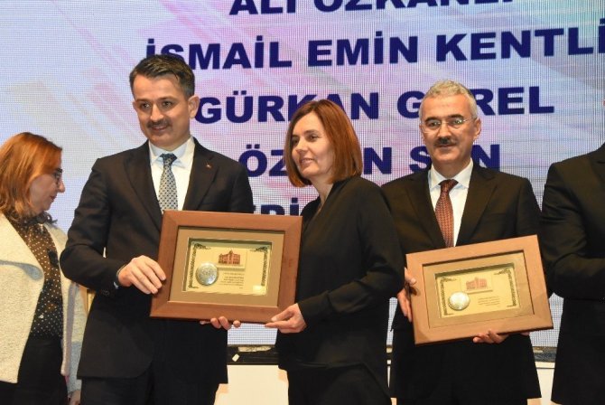 Ticaret Bakanı Ruhsar Pekcan ile Tarım ve Orman Bakanı Bekir Pakdemirli; İzmir Ticaret Odası (İZTO), Ege Bölgesi Sanayi Odası (EBSO) ve İzmir Ticaret Odası (İTB) işbirliğiyle düzenlenen Üye Ödüllendirme Töreni’ne katıldı. Törende ayrıca, İzmir Valisi Erol Ayyıldız, İzmir Büyükşehir Belediye Başkanı Tunç Soyer, AK Parti Genel Başkan Yardımcısı Hamza Dağ, Türkiye Odaları ve Borsalar Birliği (TOBB) Başkanı Rifat Hisarcıklıoğlu ve iş dünyasının temsilcileri de bulundu. Üç odanın işbirliği ile düzenlenen törende, her kurum kendi kriterleri doğrultusunda üyelerini ödüllendirdi. Bu kriterler arasında; ticari kazanç sıralamasına göre vergi rekortmenleri, ihracat ve döviz kazandıran faaliyetler, en yüksek yatırım yapanlar, oda üyeliğinde 20 ve 50 yılı geçenler, en fazla tescil ücreti ödeyen firmalar, en fazla istihdam sağlayan kadın girişimciler gibi farklı kategoriler yer aldı. Bakan Pekcan ve Bakan Pakdemirli, ekonomik gündemine ilişkin önemli açıklamalar yaptı.
