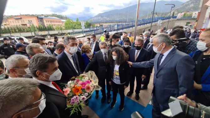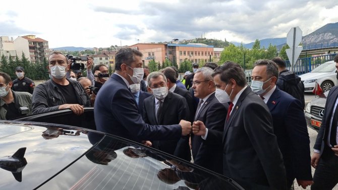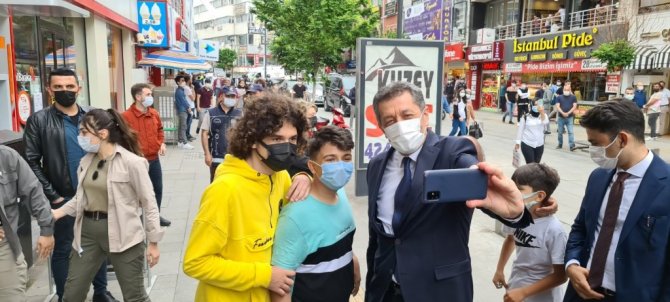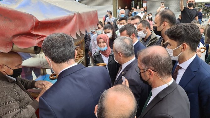Milli Eğitim Bakanı Ziya Selçuk, Karabük'te öğrencilerle pasta yaptı, seyyar satıcının tezgahından simit aldı.