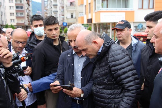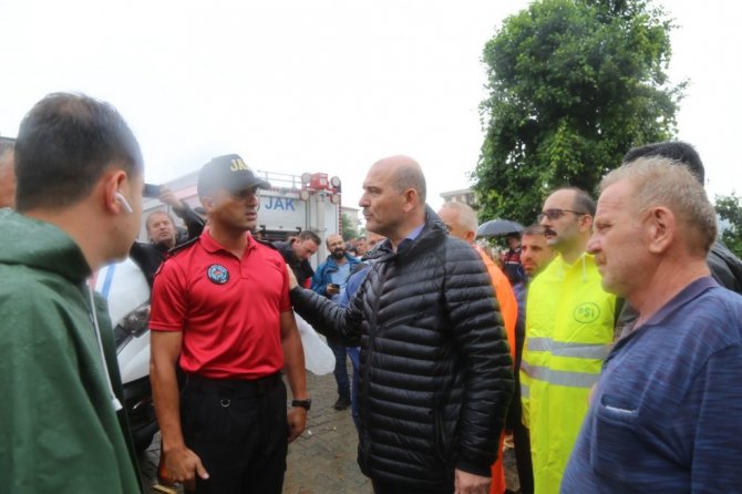 Cumhurbaşkanı Recep Tayyip Erdoğan'a hem Arhavi'ye gelmeden hem geldikten sonra sürekli bilgi verdiğini ifade eden Bakan Soylu "Sürekli iletişim halindeyiz, genel durumu anlatmaya çalıştık. Talimatları oldu. Hem Erzurum'dan hem Trabzon'dan tüm ekipleri, büyükşehir ekiplerini buraya çektik. Onlar da geliyorlar. Kızılay tüm yemek su ve diğer ihtiyaçlar için burada. Kaymakamlığımızda Kriz Merkezi oluşturduk. Çevredeki tüm illerden vidanjörleri buraya çekiyoruz. Alt katların tamamı çünkü suyla dolu, bunlar tahliye edilecek. Ana dereden şehre su gelişinin önlemek için taş ocağından taş getirerek DSİ ekipleri geçici bir tahkimat yapacaklar. Boğaziçi mahallesine dereden gelen suyu tekrar ana dereye akıtmamız lazımdı. Onun için de bir kanal açıldı. 1 metre civarı sular çekildi ama hala bir çok noktada sular var. Bir çok vatandaşımızın hasarı var. Gücümüzün yettiği ölçüde bunlara yardımcı olmaya çalışacağız. Bir çok noktada arabalar sel sularına kapıldı, bir çok noktada balçığa gömüldüler. Elbirliği ile inşallah bunun üstesinden geleceğiz. Bizi sevindiren tek bir şey var, can kaybımız yok. Çok az yaralımız var. 1 veya 2 tane. Hastanemizin alt katını su basmıştı. Oradan bir takım tahliyeler oldu. Acil Servis hizmet vermeye devam ediyor. Tüm iş makinelerimiz çalışıyor, herkes gayret gösteriyor, çalışıyor. İnşallah bunun da üstesinden hep beraber geleceğiz, sabırla aşacağız" şeklinde konuştu.