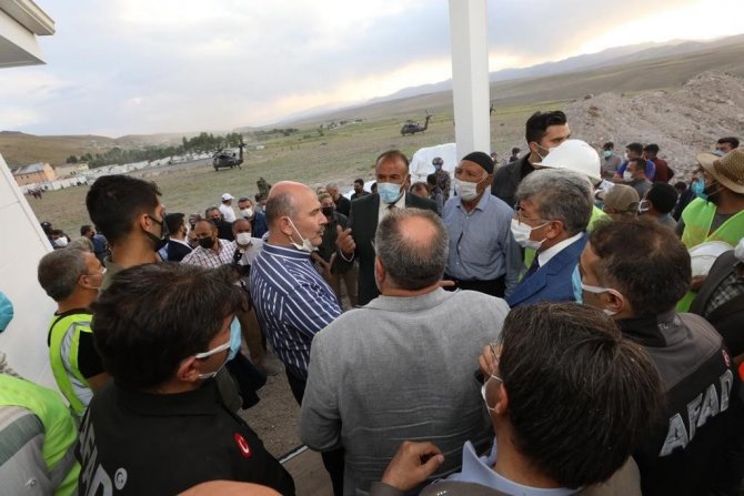 Öğle saatlerinde Van'a gelerek Çaldıran ilçesinde incelemelerde bulunan Bakan Soylu, beraberindeki Van Valisi Mehmet Emin Bilmez, AK Parti Van milletvekilleri Osman Nuri Gülaçar ve Abdulahat Arvas ile Başkale ilçesine geçti. İran'ın Hoy kentinde 23 Şubat'ta meydana gelen ve Van'ın Başkale ilçesinde yıkıma yol açan 5.9'luk depremin ardından yapılan örnek konutta ve konutların yapılacağı alanda incelemelerde bulunan Bakan Soylu, depremzedelerin sorun ve taleplerini dinledi. Vatandaşların talepleri doğrultusunda konutların yapılacağını belirten Bakan Soylu, "Bir kısmınız "kendimiz yapalım" diyorsunuz. Tecrübemiz şu, daha önce de depremler oldu. Parasını verdik vatandaş kendi evini yaptı. O evler tekrar yıkıldı. Biz devlet olarak o zaman nasıl bir durumda kaldık. "Depremde yapılan evler yıkıldı" dediler, anlatamıyoruz. Biz yapmadık, parasını verdik onlar yaptı. Oysa bizim yaptıklarımız projesiyle, çelik konstrüksiyon, su ve elektrik tesisatıyla ısı yalıtımıyla biz sizi düşünerek bunları ortaya koyuyoruz. Güneş enerjisi hattı da gelecek. Benim sizden talebim, merkezde fay hattının olmadığı ve uzmanların olabilir dediği yerlere yapılacak. Ancak fay hattının etkileyebileceği yerlerde bizim bir şey yapmamız mümkün değil. Size yanlış yapmış oluruz. Haksızlık etmiş oluruz. Bu meseleleri hep birlikte istişareyle eğer çözersek bir sonuç alırız" dedi.