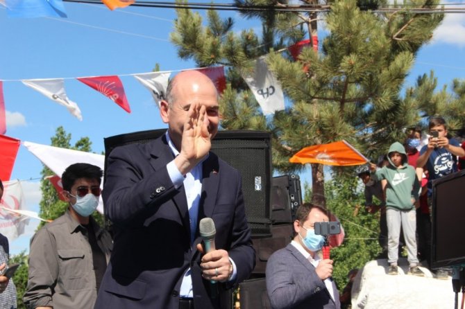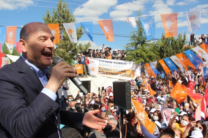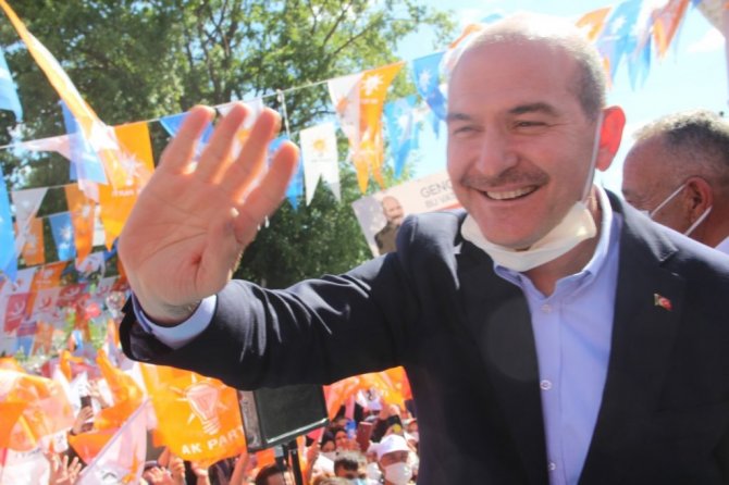 Şimdi 3 teröristin daha etkisiz hale getirildiğini aktaran Bakan Soylu "Jandarma Genel Komutanını aradım ben gelirken, 3 terörist daha gitti. Şimdi ne yapacaklar? Biz üreteceğiz değimli, çocuklarımız okuyacak; mühendis olacak, doktor olacak, ülkemizin her tarafından turist olacak, buradan oraya gidecek, oradan buraya gelecek, insanlar gezecekler, topraklarını, bağını, bahçesini her birini sürecekler, hastaneler olacak, yollar olacak, okullar olacak, spor salonları olacak her şey olacak. Peki onlar ne yapacaklar? Ürkütecekler, tehdit edecekler, haraç alacaklar, annelerin çocuklarını dağa götürecekler. 9 yaşındaki çocukları, hafız olan çocukları annelerinden kopartıp da dağa getirmişler. Bunun hesabını sormazsak; boynumuz bükük kalır boynumuz. Nasıl Diyarbakır anneleri pes ettirdi HDP'yi? Onlar annelerin yüreğinin ne olduğunu bilmiyorlar. İşte bugün Türkiye'de Allah'a şükürler olsun 10 bin, 20 bin civarında olan terörist sayısı 250'ye kadar düştü. Daha da düşecek daha da. 1 yılda 5 bin 500 kişi katılıyordu terör örgütüne. Şimdi 15, 4'ü de yurt dışından. 11 kişi bakın, 11 kişi ancak. Hep beraber beldelerimiz, köylerimiz huzur içinde oluyor" diye konuştu.