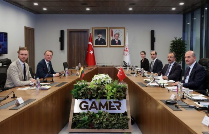 İçişleri Bakanı Süleyman Soylu, Bakanlığa ait Güvenlik ve Acil Durum Koordinasyon Merkezi'nde (GAMER) Litvanya Dışişleri Bakanı Gabrielius Landsbergis ile bir araya geldi. Bakan Landsbergis'in Şeref Defteri'ne attığı imzanın ardından iki bakan günün anısına fotoğraf çektirdi. Ardından gerçekleşen heyetler arası görüşme, görüntü alınmasının ardından basına kapalı devam etti. Görüşmede, güvenlik, göç ve kaçaklıkla mücadele konularında iş birliği ele alındı.
