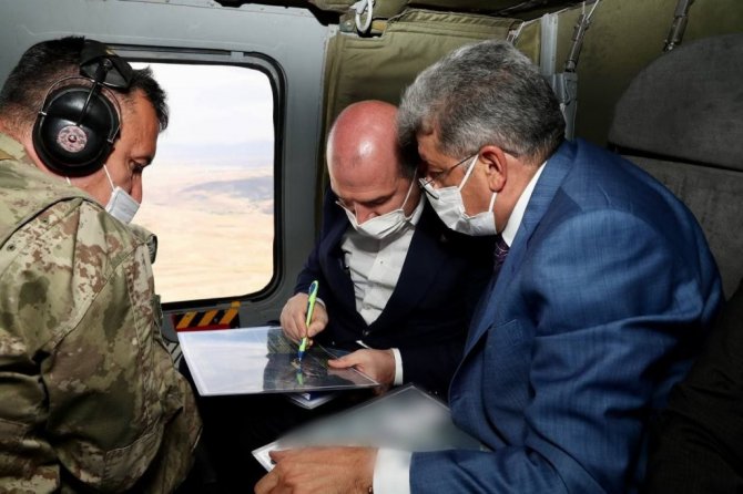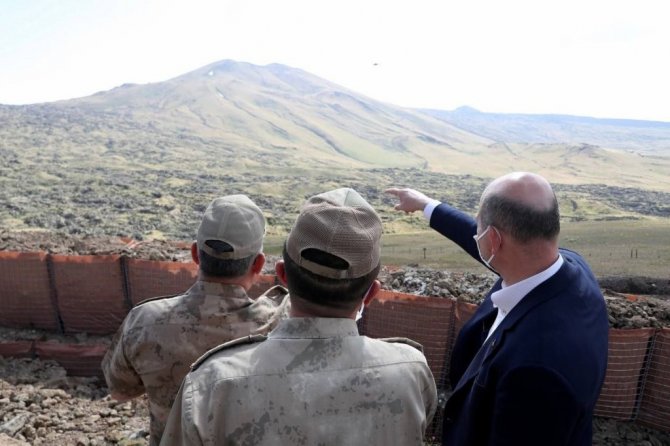 İçişleri Bakanı Süleyman Soylu, Van'ın Çaldıran ilçesi sınırlarındaki Tendürek Dağı eteklerindeki askeri ziyaret etti.