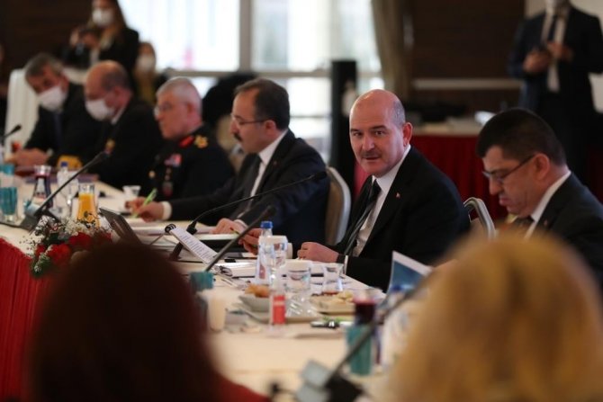 Civardaki ülkelerden göç durumu olmaya müsait 8 milyondan fazla kişinin olduğunu aktaran Bakan Soylu, "Göç potansiyeli olan 2 milyon Afgan, İran sınırında var. 3.9 milyon İdlib'de var. 1.2 milyon Cerablus, Azez, Mare, El Bab, Çobanbey bölgesinde var. 550 - 600 bin Afrin'de var. 350 bin de Resulayn ve Tel Abyad'da var. Yani 8 milyonun üzerinde hemen harekete geçebilecek bir göç kütlesi var. Bu çerçeve içerisinde etrafındaki coğrafyayla ilişkini yönetmeye çalışan bir Türkiye var. Sadece son 5 yılda Doğu ve Güneydoğu sınırlarımızda 2 buçuk milyon Türkiye'ye girmek için baskı yaptı ve engellendi. Bizim yakalayıp geri gönderme mekanizmasıyla geri göndermeye çalıştığımız kaçak göçmen sayısı da 306 bin. 306 bin 138 kişiyi geriye gönderdik. Dünyada bu kadar güçlü bir geri gönderme mekanizması yok" ifadelerini kullandı.