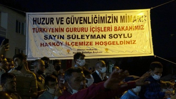 Vatandaşların yoğun ilgi gösterdiği Bakan Soylu, yaptığı konuşmada, güvenlik toplantısı yaptıkları yerin çok manidar olduğunu söyledi. Şenyayla'nın göbeğinde güvenlik toplantısı gerçekleştirdiklerini kaydeden Bakan Soylu, "Bu ülkeye, bu milletin kardeşliğine, burada bulunan insanlara bedel ödetmeye çalışanlara dedik ki; bu ülkeyi bölemezsiniz, bu ülkenin kardeşliğini ortadan kaldıramazsınız. Sizler cesaretinizi ortaya koymasaydınız, "biz bu ülkeye bedel ödetmeye çalışanlara birlikte karşı duracağız" demeseydiniz bugün bu huzuru bulamazdık. Allah sizlerden razı olsun. Bugün Doğu ve Güneydoğu'nun her yerinde huzur var. Çocuklarımız okula gidiyor. Üniversitelere gidiyor. Her ilde havalimanları, hastaneler var. Tekstil kente uğradık. Bir tarafta fabrikalar yükseliyor bir tarafta da hayvancılık yapılıyor. Neymiş terör örgütü gelecek de buradaki bu güzel insanların yaylalarına gitmesini engelleyecekmiş, yapabildiler mi? Hayvancılığı yaylalarımızın her tarafında yapabiliyoruz. Yetmedi barajları yaptırmayacaklardı, becerebildiler mi? Size şunu söyleyeyim; Türkiye büyüyor. Türkiye'nin her tarafını gezen biri olarak söylüyorum, Türkiye bir büyüyecekse Allah'ın izniyle Doğu ve Güneydoğu 5 büyüyecek. Bu sizin hakkınız. Yıllarca çok sıkıntı çektiniz bedel ödediniz. Göreceksiniz engelleyemediler, engelleyemeyecekler. Sadece Hasköy'de değil, Doğu ve Güneydoğu'nun her yerinde çocuklarımız mühendis, doktor olacak." dedi.
